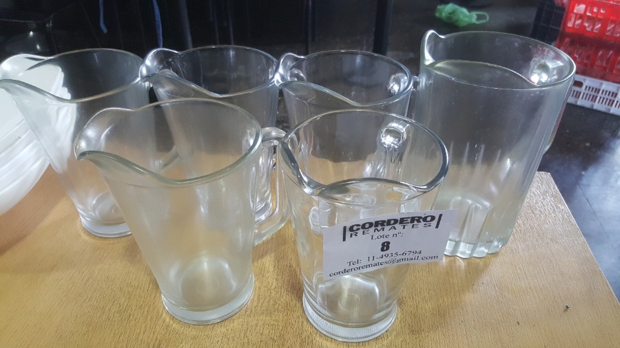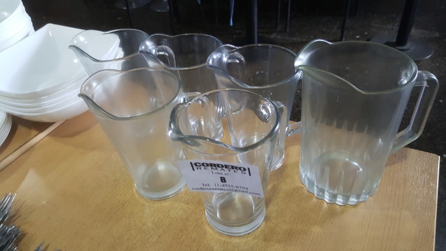 7 jarras de vidrio con manija (6 de 1 lts y 1 de 1 ½ lt), precio por unidad