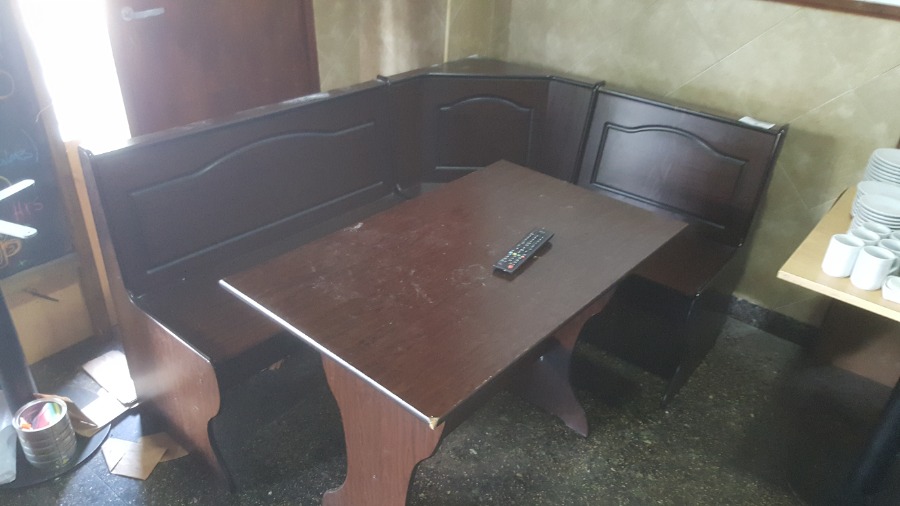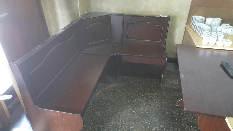 Juego de living compuesto por 1 esquinero de madera + mesa – todo lustre wengue