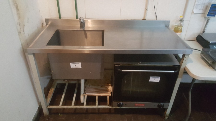 Mesada de trabajo acero inox con bacha (50x40x40) y canilla monocomando – estructura de hierro – 1,40x60x92