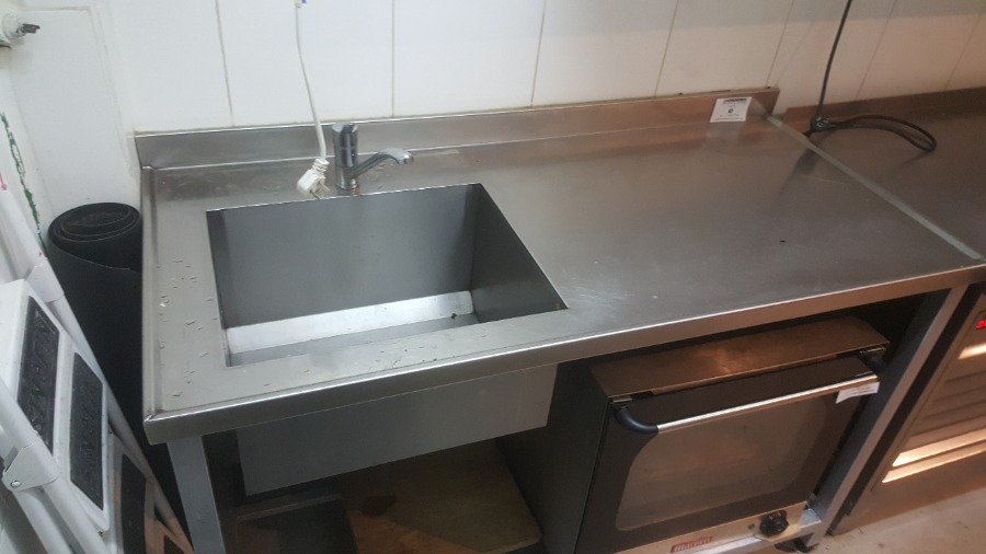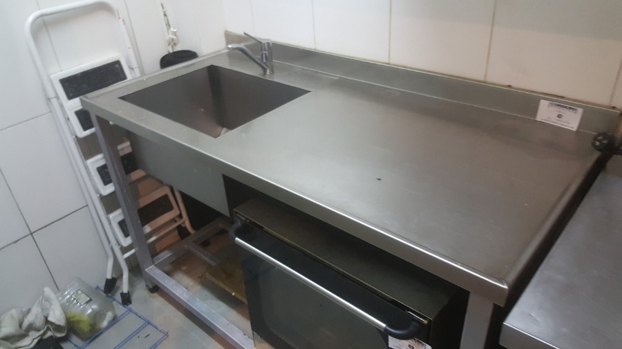Mesada de trabajo acero inox con bacha (50x40x30) y canilla monocomando – estructura de hierro – 1,40x65x90 (sucursal recoleta)