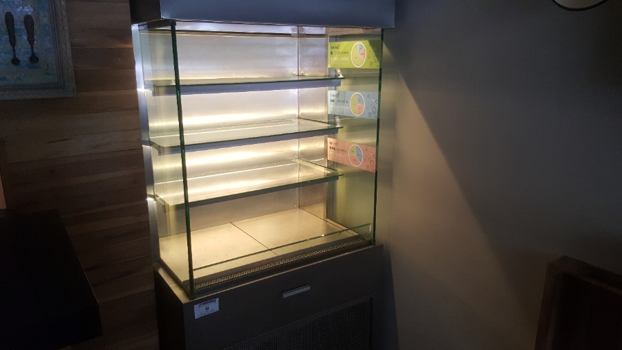 Heladera láctea take away FRIMAQ toda en acero inox con 3 estantes de vidrio (dobles), iluminación y control digital – 1x80x1,89 (sucursal recoleta)